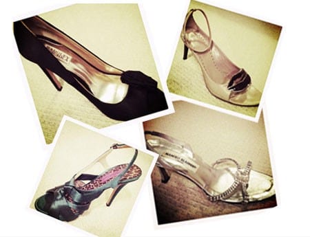 Equally irrational is my obsession with beautiful heels. I spent quite a lot of time last night rummaging through my shoe collection. Which pair to wear to a lunch in a room full of business women who will undoubtedly have chosen their footwear extra carefully today? I have narrowed it down to the four pairs below. Which would you choose?