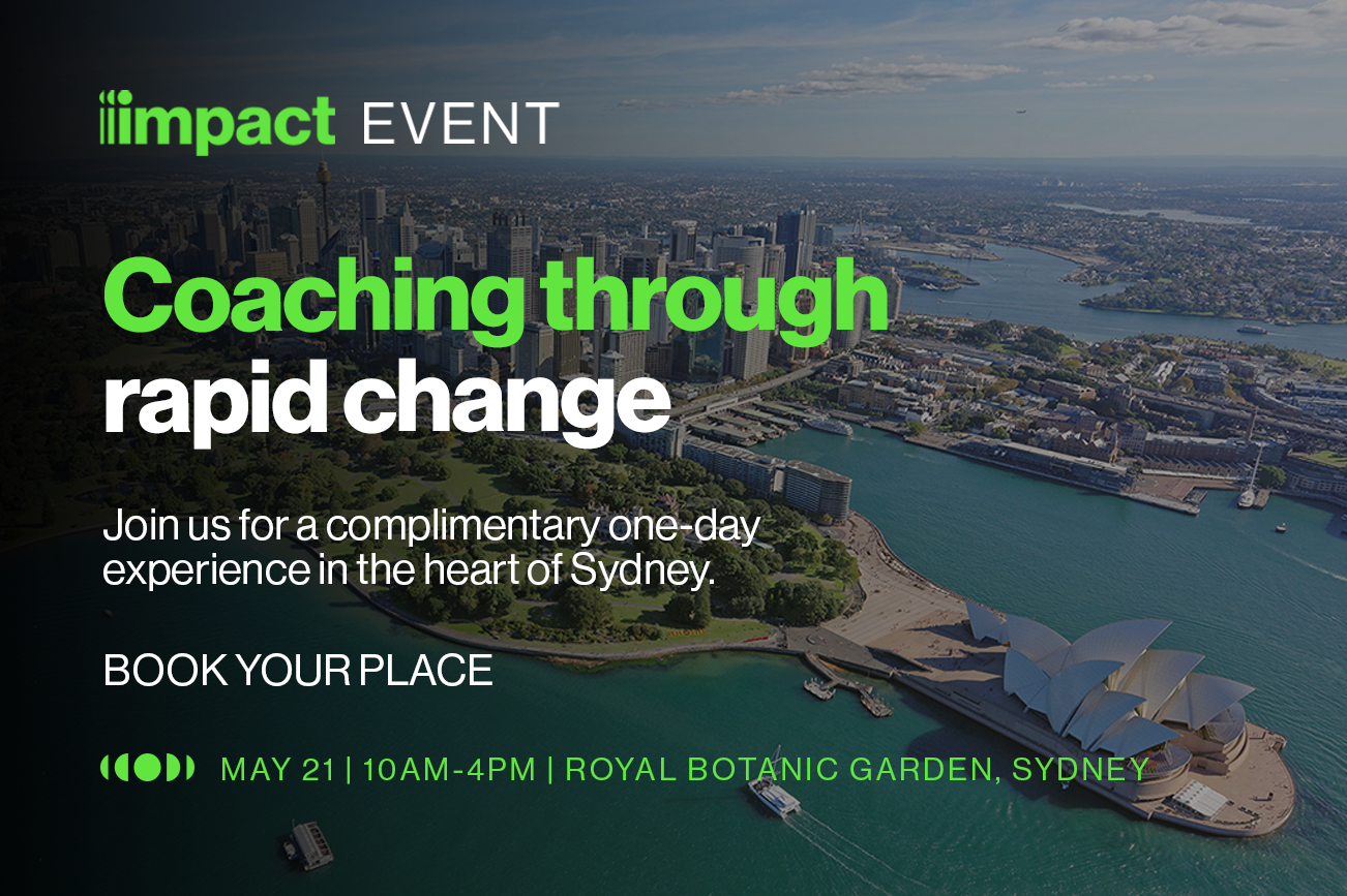When did you last step back from the noise to think deeply about the challenges ahead? Join Impact for a complimentary one-day experience in the heart of Sydney, designed for L&D professionals shaping leadership in fast-changing environments. As expectations rise and resources tighten, coaching has become a critical capability. This immersive, experiential day will build the mindset and practical skills leaders need to move beyond firefighting and focus on what matters most. Explore real coaching practice, rich peer dialogue and practical strategies for leading through complexity – networking with peers from across sectors along the way.
