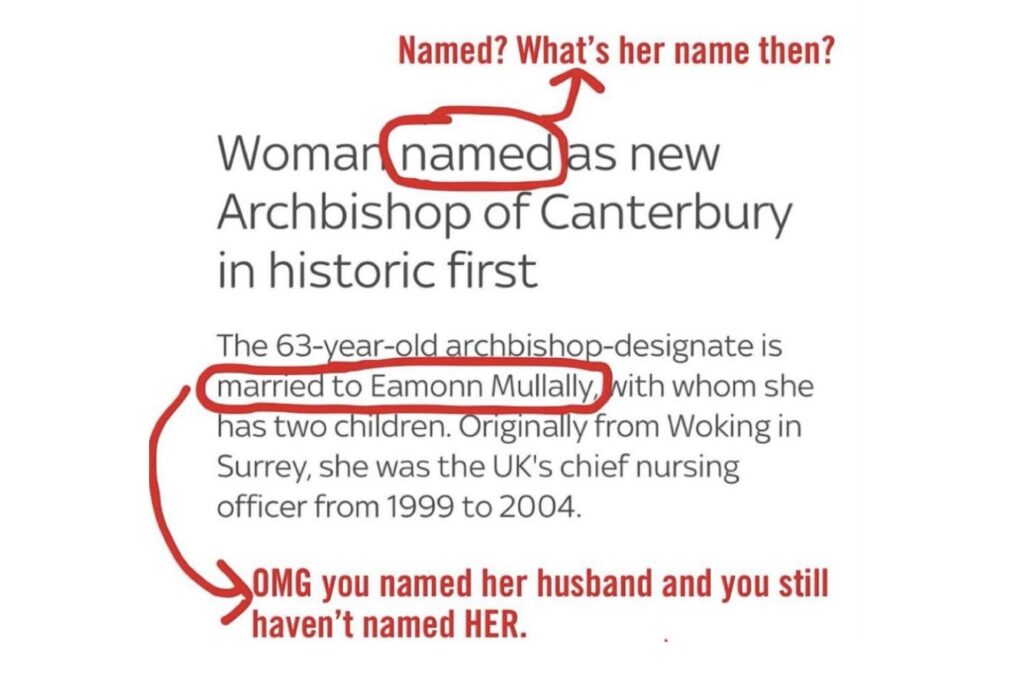 The original Sky News UK headline that was shared on Instagram by Amnesty Feminist, was dehumanizing, reducing Dame Sarah Mullally to her familial roles rather than emphasising her credentials. She is a former Chief Nursing Officer and was the first female Bishop of London in 2018. Her advocacy for women’s rights within the Anglican Church is well-documented and commendable. Yet, these accomplishments were overshadowed by irrelevant personal details.