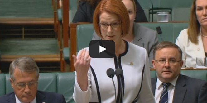 A motion of no confidence — Tony Abbott’s first — may not have been particularly interesting given Gillard remains Prime Minister and thus her agreements with Oakeshott and Windsor remain in place. Wilkie has indicated he will only vote no confidence in the case of a major scandal. The Prime Minister’s speech in response to Tony Abbott’s motion to suspend remarks contain little of her usual back-against-the-wall fire, but relied on outlining her achievements and warning that she had more left to do.