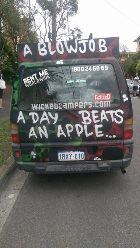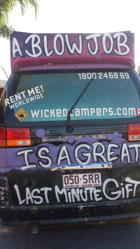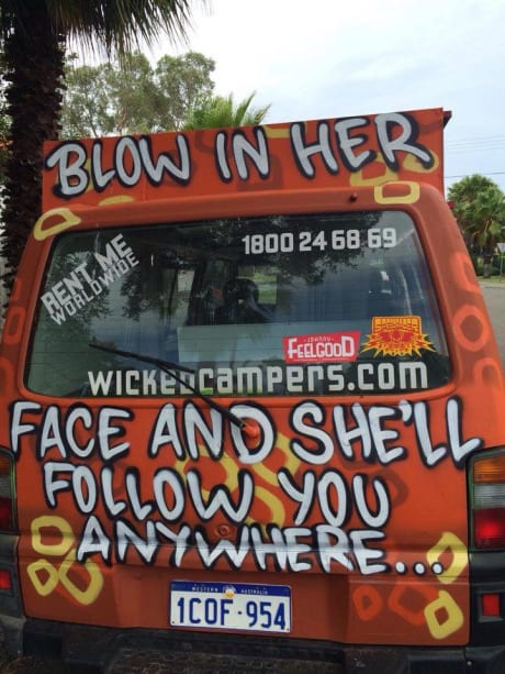 Over the last few weeks, more and more people have been coming forward with images of Wicked Camper vans, that have been photographed around Australia, and they’re not impressed. The most frustrating component continues to be the fact that parents find themselves powerless when their children read aloud inappropriate slogans they sight and then scramble to try and create a ‘child-friendly’ explanation; as well as the fact that a wider community – outside the tiny 20s, backpacker demographic Wicked Campers aims at – are also not wishing to read them either.
