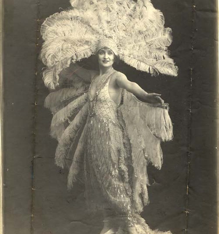 The iconic feathered showgirl was born amid the chaos of the first world war, when the wealthy, global French superstar Gaby Deslys entertained Parisians and Allied soldiers in a 1917 show called Laissez-les tombe! (Let Them Fall), a dazzling spectacle of ostrich feathers, rhinestones and beauty.