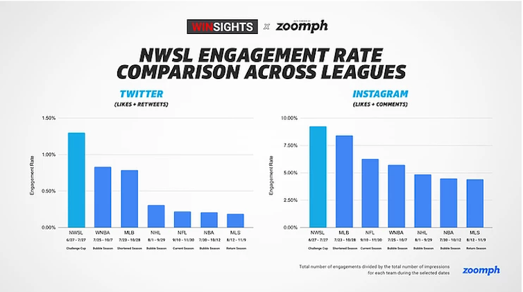National Women’s Soccer League (NWSL) viewership swelled 493 per cent for their 2020 Challenge Cup and 500 per cent year over year, LPGA viewership increased 21 per cent and this year’s U.S. Open tennis final between Naomi Osaka and Victoria Azarenka averaged 2.1 million viewers on ESPN.