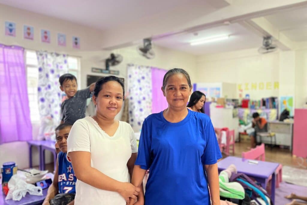 After being turned away from one shelter, Maribel’s family found space at an elementary school in Rodriguez, Rizal, where hundreds of other displaced families had gathered. Every classroom was full to bursting. Her family ended up in a room with six others, laying out thin mats on the floor of their cramped new living space.